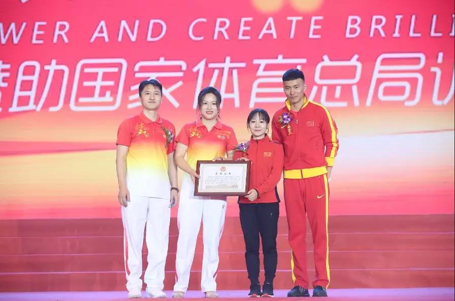 【吕铁杭副局长向康亦健集团董事长潘峰博士颁发”体育·训练局赞助商”荣誉证书】