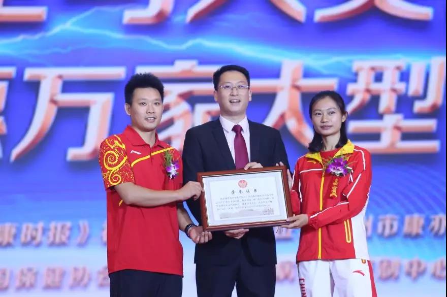 【世界奥运冠军为康亦健颁发运动员备战保障产品授权证书】