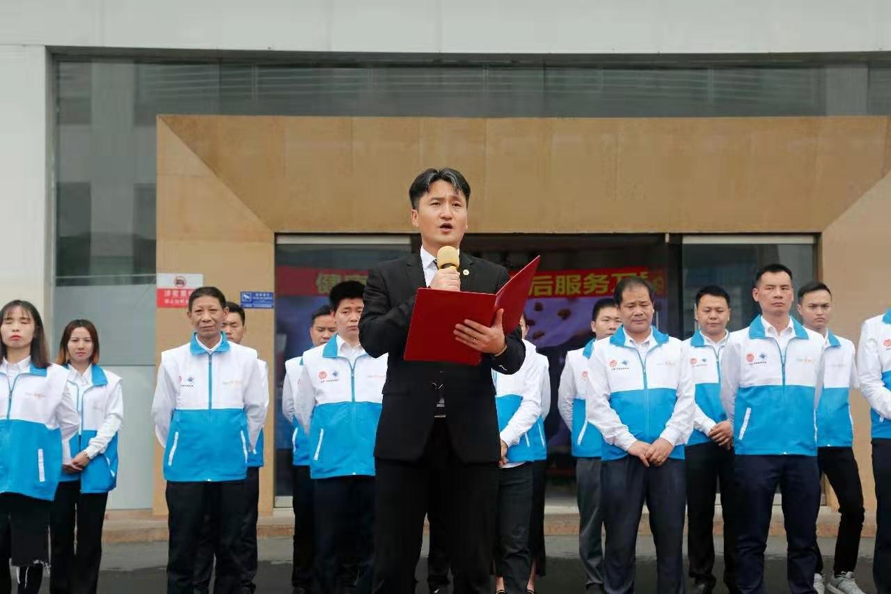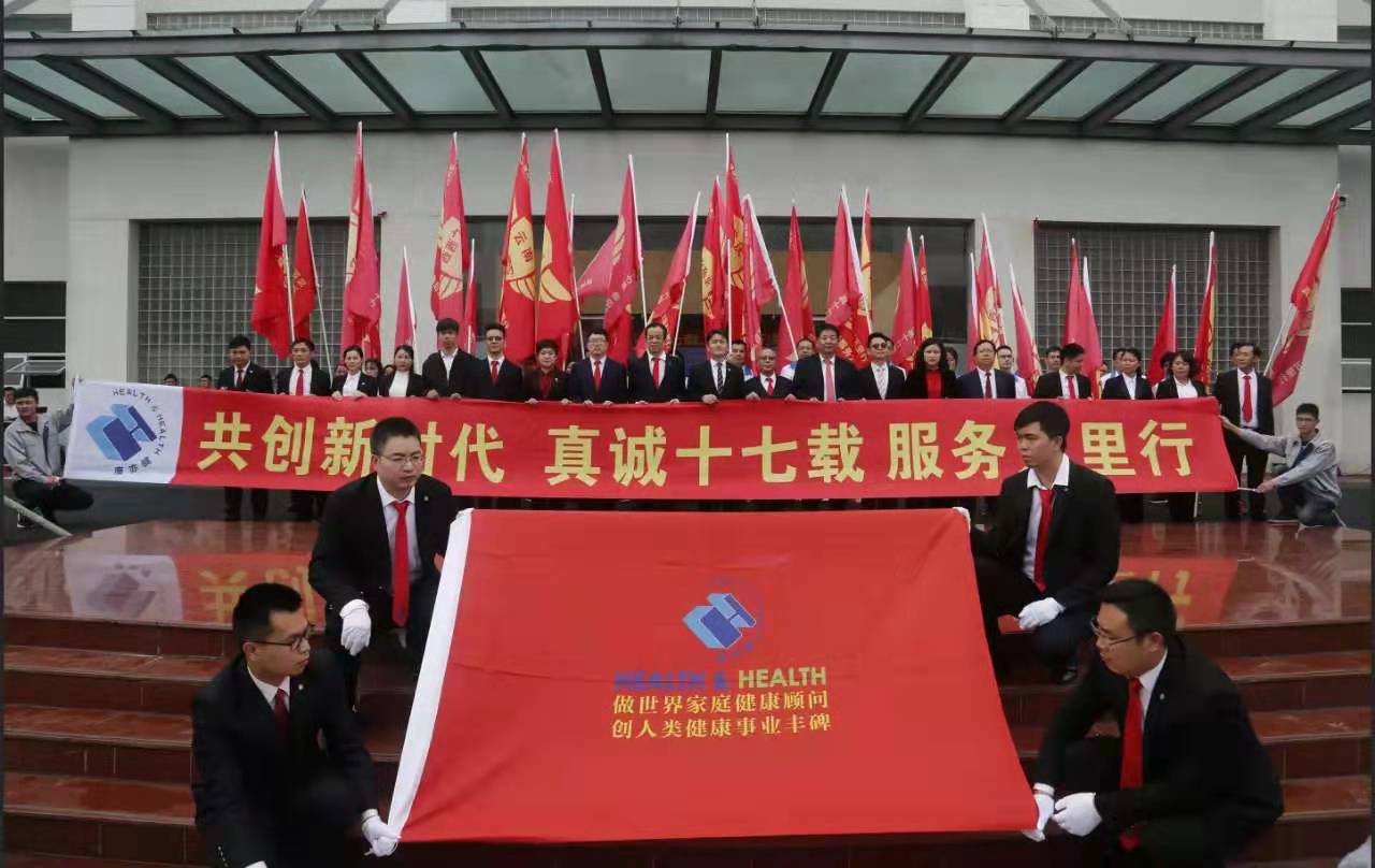 随着赵总慷慨激昂的发言结束,健康坊管理团队入场,健康坊赵总经理向全国各省/市自治区、售后代表授旗。