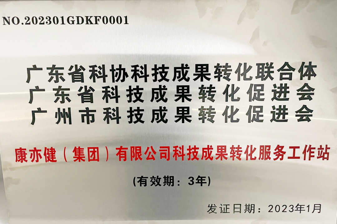 科技实力,创新引领。近日,康亦健(集团)荣获科技成果转化服务工作站授牌!此次授牌是引导政府、高校及专业服务资源力量——专家、人才、技术等创新要素向企业集聚的重要表现,多维度赋能科技创新,康亦健自主创新力全面提升。