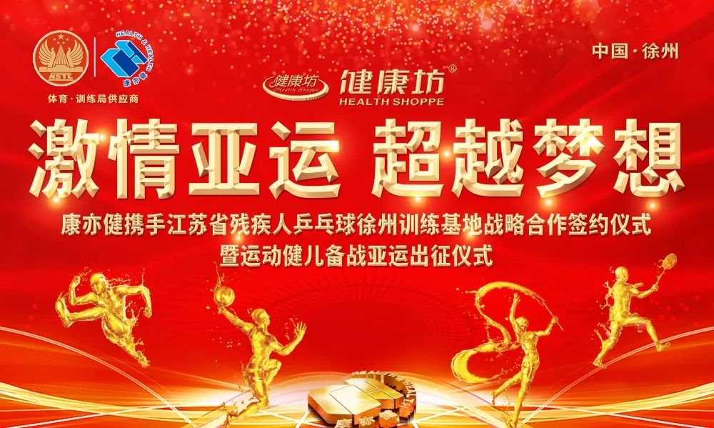 瞻望圣火的光辉,共迎亚运的激情。“激情亚运 超越梦想——康亦健携手江苏省残疾人乒乓球徐州训练基地战略合作签约仪式暨运动健儿备战亚运出征仪式”于江苏徐州隆重举行,助力残奥健儿,传递大爱精神!