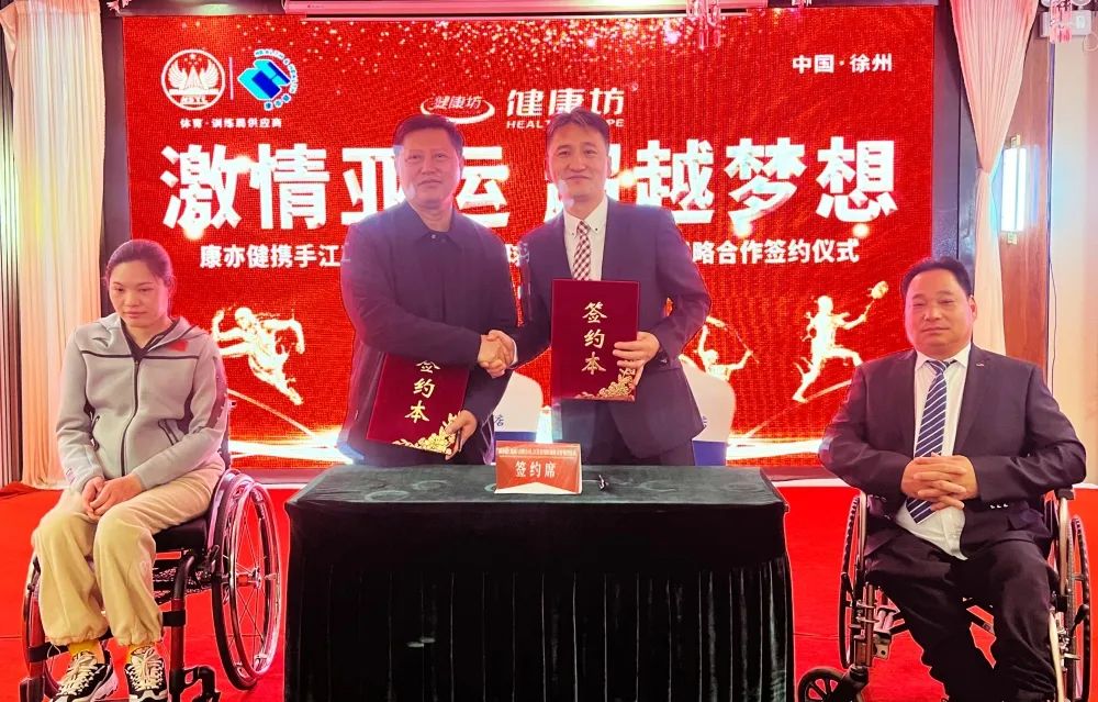 一脉相承康亦健“助力体育 健康中国”初心, 康亦健健康坊秉持合作共赢原则,与江苏省残疾人乒乓球徐州训练基地达成战略合作:助力中国残奥,为全民健康贡献力量!