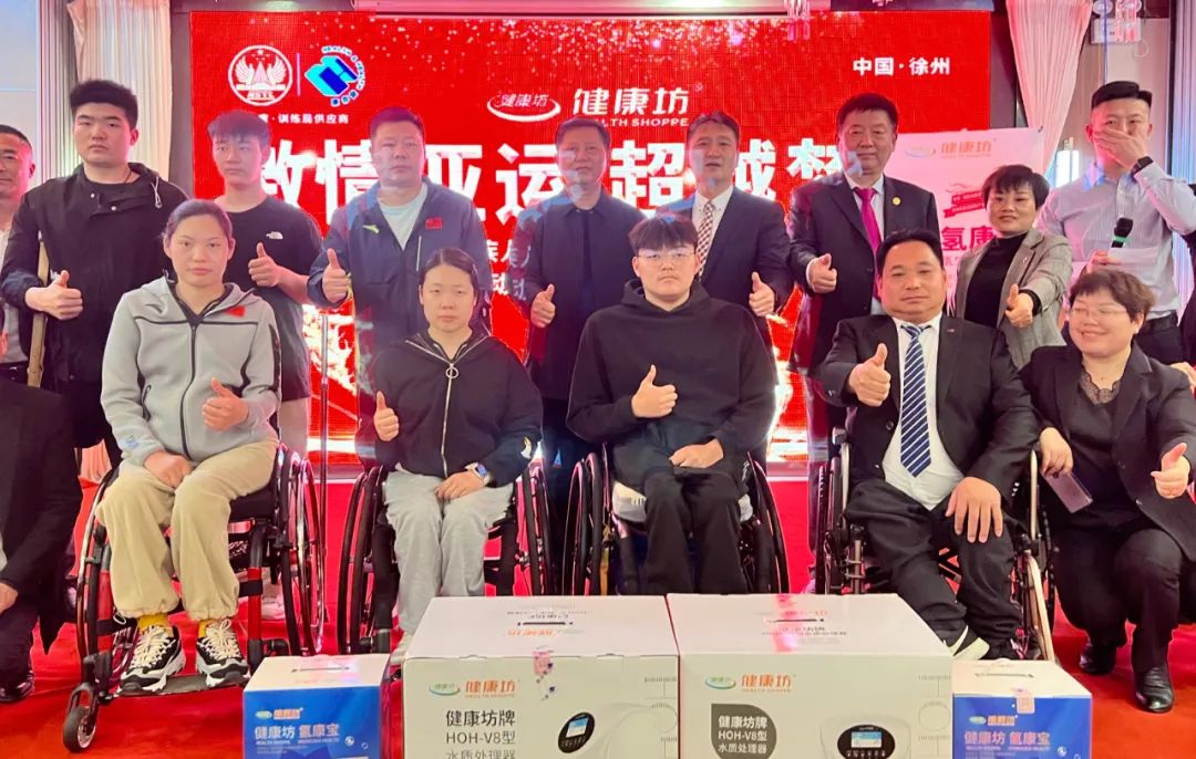 助力出征,健康保驾护航。康亦健集团为残奥健儿们带来了健康坊V8水机、氢康宝等康复理疗健康产品,这是一份爱心捐赠,是一份无声支持,更是一份鼓励祝愿!