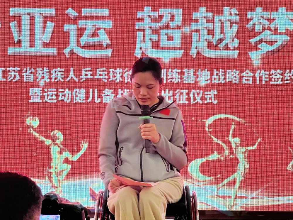 作为中国残疾人乒乓球运动员,徐州训练基地运动员代表刘静曾荣获2006年瑞士锦标赛TT3团体冠军、2006年远南锦标赛单打冠军TT3 团体冠军……刘静代表全体残奥健儿向健康坊慈善捐助表示衷心的感谢,备战亚运,定当拿出全力以赴的气势,不负爱的期望,更不负健康的助力!