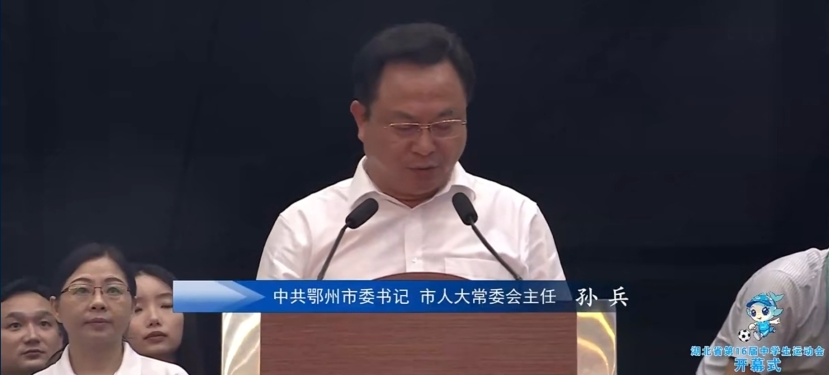 中共鄂州市委书记、市人大常委会主任孙兵在致辞中表示:“此次中运会的顺利召开离不开社会各界的支持,感谢幕后工作者们的辛勤付出。希望运动员们能够努力赛出风格、赛出水平、赛出成绩。预祝运动员取得优越成绩,预祝湖北省第十六届中学生运动会圆满成功!”