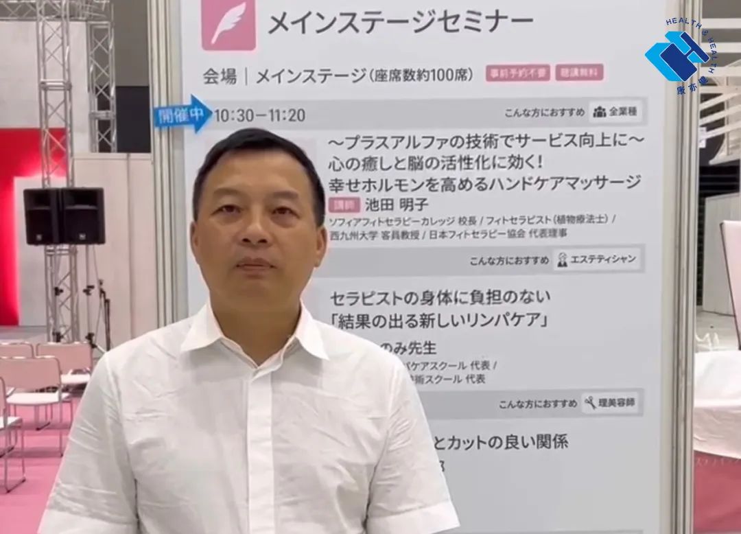 本次展会的一大特色就是研讨会。潘董就中国健康产业的现状、康亦健集团的发展历程以及日本康养事业等方面做了专业分享,引得现场阵阵热烈掌声。